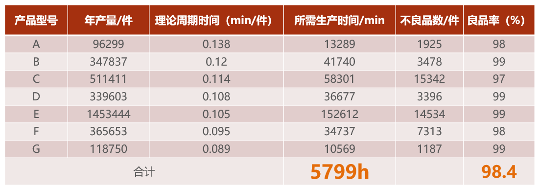各产品种类所需生产时间及良品率统计如表2-8所示。