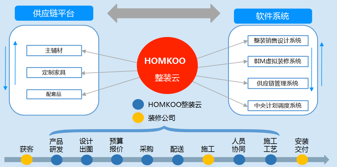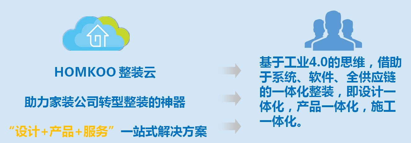 HOMKOO整装云基于对定制家居的深厚积累,将定制产品与家装的运营有机融合: