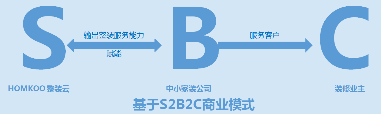 HOMKOO整装云”是“S2b”模式,终极目标:为中小装修公司与定制经销商赋能,提升他们的业务效率。