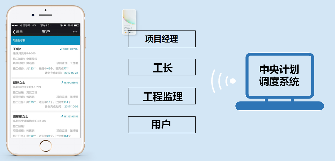 HOMKOO整装云对装修现场的工地实现全数据化管理,所有工地都实现了数据化、 信息化、在线化。实现传统装修管理一直的不可控到可控。