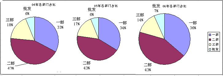 二部销售额稳定增长,是拉动整体销售额成长的主要来源,一部的市场重要性稳步提升,三部销售额有较大的减退。三部费用所占最大,但是销量表现为不断退步,如前文所述,人员配置不合理也使费用造成较大浪费。