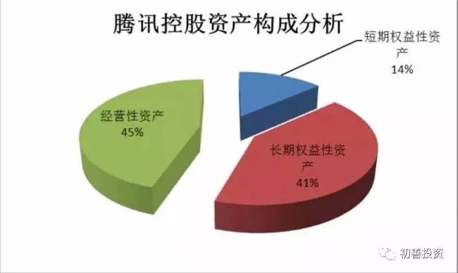 在上述连接一切战略的指引下,腾讯的资产结构也明显投行化了。如薛云奎教授所述,在腾讯2016年度报告中,资产总额3958.99亿元,其中的长期和短期权益类投资便高达2177.53亿元,占总资产的55%。这些投资分别包括但不限于:京东(18.22%)、特斯拉(5%)、Supercell (76.9%)、华彩控股(7%)、华谊兄弟(4.84%)等。从资产结构这个角度看来,腾讯可以称作一家股权投资机构了。如图6-48所示。