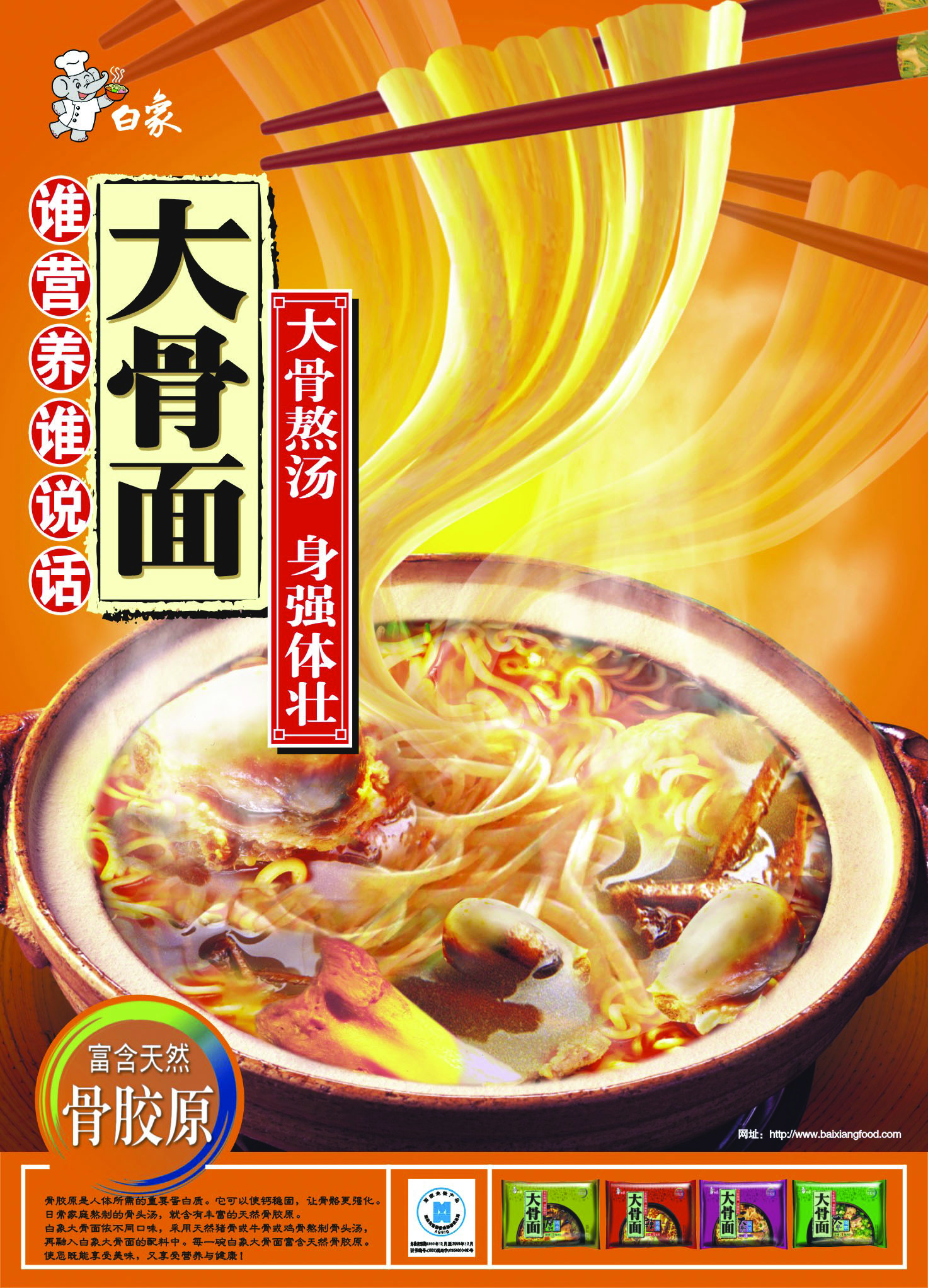 要突破,就不仅要从美味方面来挖掘大骨面的卖点,还要从营养方向来深度挖掘大骨的卖点,通过对营养卖点的精确寻找,从而达到“占位”效果。经过与白象面食研究中心专家、生产车间工人师傅深入地沟通,我们对大骨的营养价值有了更深的了解;同时,美国传出“骨骼健康成长的关键,就是有骨胶原蛋白的持续保障”的消息也成了有力的依据。有了有力的创意论据支持后,采纳营销专家寻找出了产品的独特销售主张(USP),构建三层式USP,让竞争对手无法模仿,从而使大骨面产品拥有绝对的领导地位。