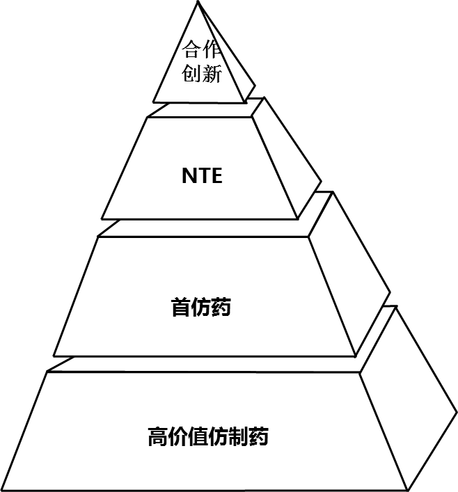 总结TEVA公司的仿制药研发策略,可分为四种研发方向:“高价值仿制药”“首仿药”“新治疗实体(NTE,New Therapeutic Entity)”“合作创新”。如图3-6所示。