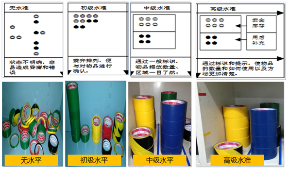 中级水平:通过一般标识,物品摆放数量、区域一目了然。
