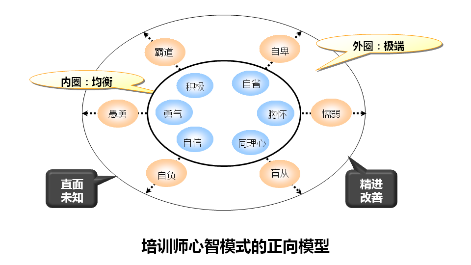 为此,笔者基于培训实践的观察与体认,构建了一个培训师心智模式持续修炼的境界,称为“正向模型”,供读者诸君参考(如图4-5)。