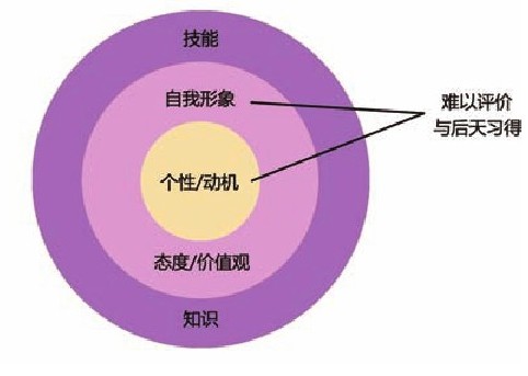 按照冰山模型和洋葱模型,知识和技能是看得见、表面的特性,自我概念、特质和动机,则是较隐藏、深层且位于人格中心的能力。动机和特质,在人格冰山的底层,难以探索与发展,自我概念介于知识与特质之间,态度与价值观可以借由训练、心理治疗和正向的发展经验来改变,但改变的时间可能较长也较困难。