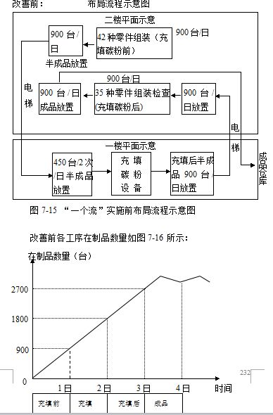 图7-13是实施“一个流”前传统的生产布局: