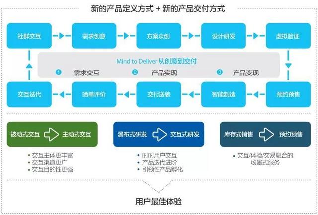 随着探索的逐步深入,海尔运用大数据及互联网探索方面的先进成果,推出了中国首个自主创新的工业互联网平台——COSMOPlat。COSMOPlat以互联工厂模式为核心,改变了传统工业制造中单纯“以机器换人”模式,让用户全流程参与产品设计研发、生产制造、物流配送、迭代升级等环节。在“人单合一”模式的引导下,COSMOPlat真正体现了该模式的本质,即“用户付薪”,也就是用户愿意定制企业的产品。它能让用户全流程参与进来,从提出设想到设计、下单,再到最后拿到产品,用户可以看到定制产品的全过程,产品生产出来直接送到用户家中。