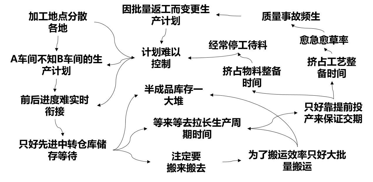 (4) “田”字格布局方式未考虑工艺流程,只是按照自己的一亩三分地布局。我的区域我说了算,你的区域我也不管,没有全局的精益思维方式。