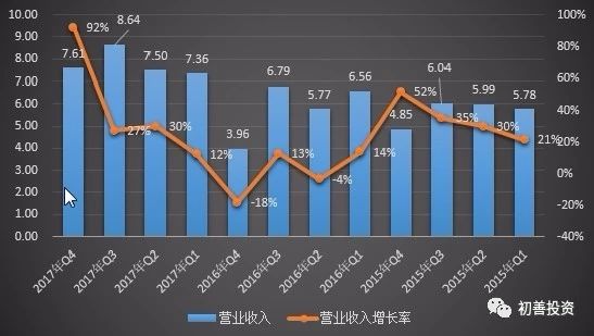 从营业收入季度同比看,从2017年2季度开始,营业收入恢复20%以上增长,且维持了三个季度,单季度收入均超过7亿元,可以说从2016年年个位数增长中脱离出来。如图2-24所示。