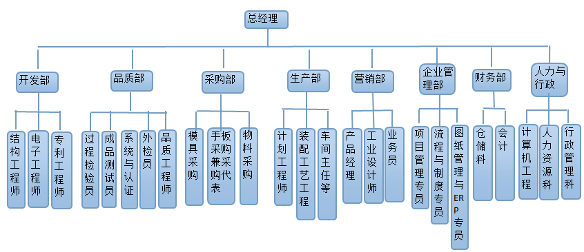 (2)结构工程师和电子工程师。他们属于纯技术型的研发人员,分别归属于开发部(或叫研发部)和电控部。如果企业规模小,电子工程师人数较少,不足以成立一个部门,则可以合并到开发部。