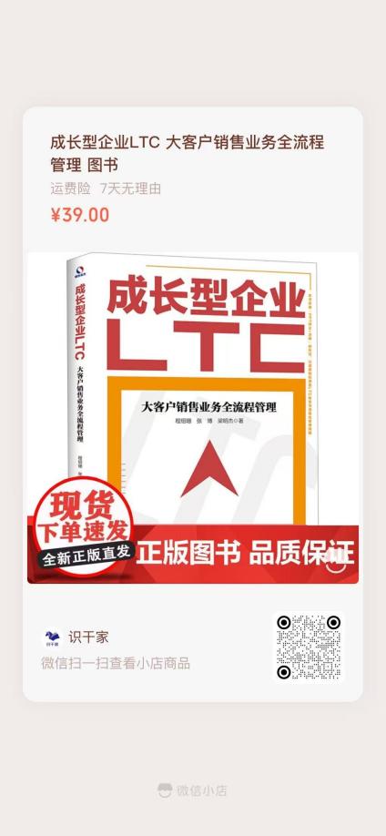 LTC(Leads to Cash)就是从线索到回款的全流程项目管理,线索是这个流程的首要抓手。《成长型企业 LTC》这本书把华为的 LTC 方法做了适合成长型企业的方法论改造,让其更简洁高效地应用于成长型企业。