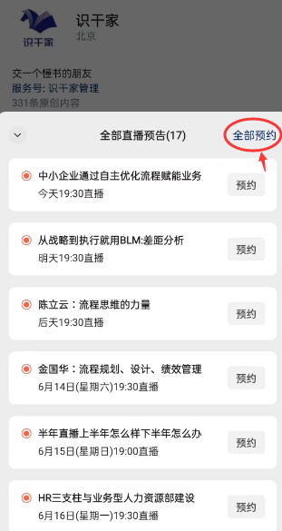 一键预约全部直播