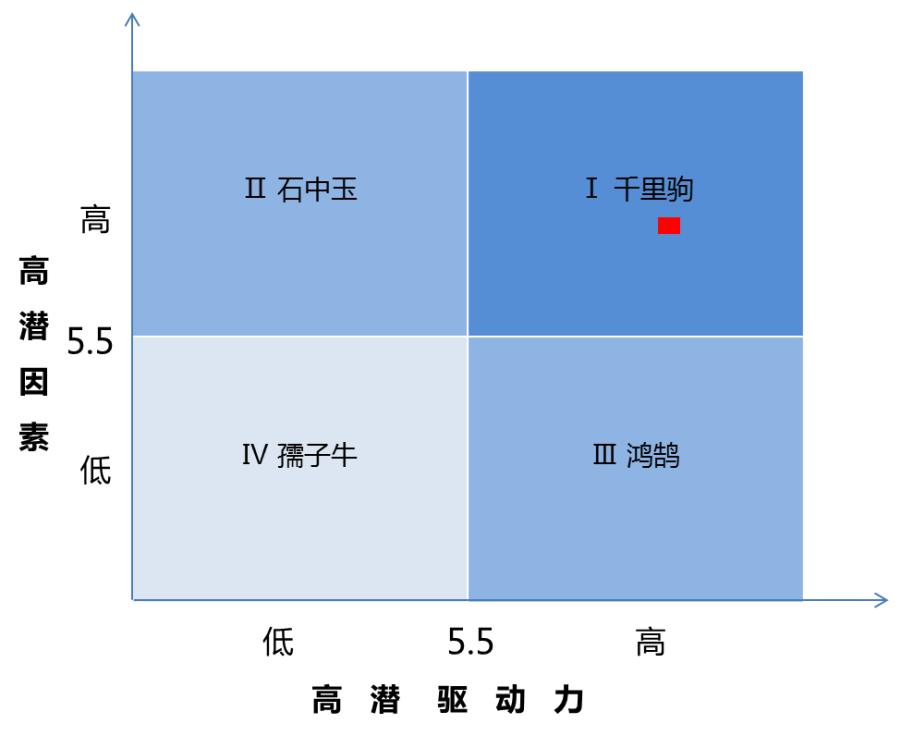 从潜质和意愿整体评估结果来看,吴昊的高潜因素总评为7.2分,潜质处于中上水平,高潜驱动力总评为8分,具有较高的发展意愿,处于I象限,是不可多得的千里驹。