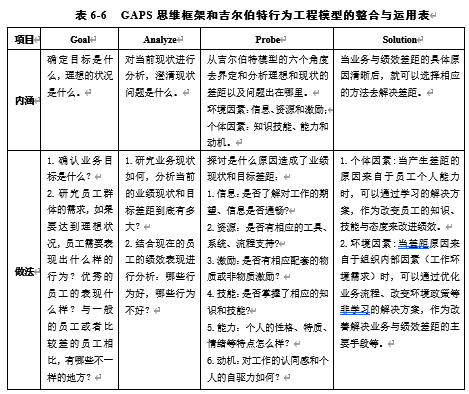 表6-6 GAPS思维框架和吉尔伯特行为工程模型的整合与运用表