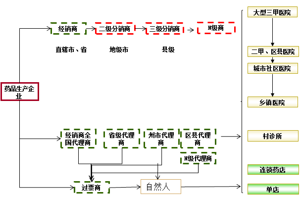 代理制为主的制药企业,由于市场上基本没有地面管控队伍,都是依靠全国代理、省级代理等向下层层招商形成的商业机构。