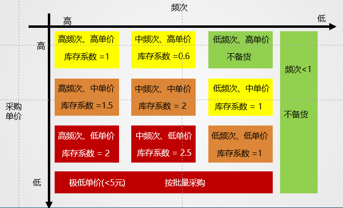 首先,根据频次的大小,确定某一个配件是否进行备货。不备货的配件不用考虑深度问题,备货的配件才考虑备货深度的问题。