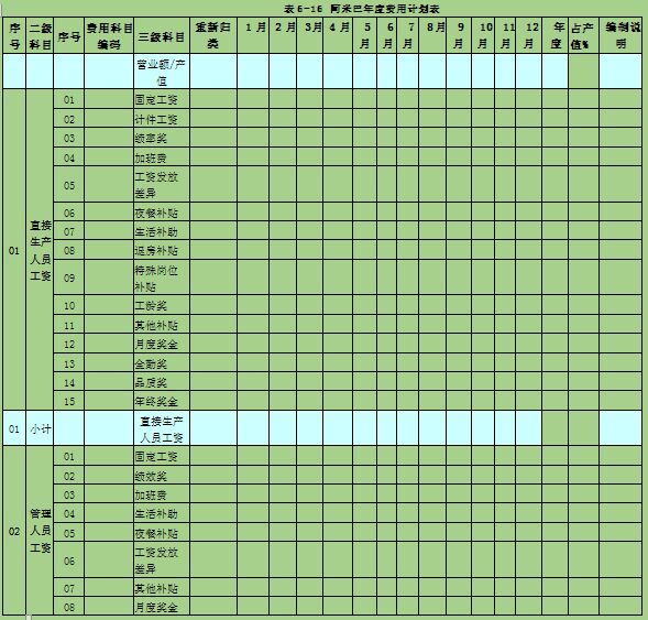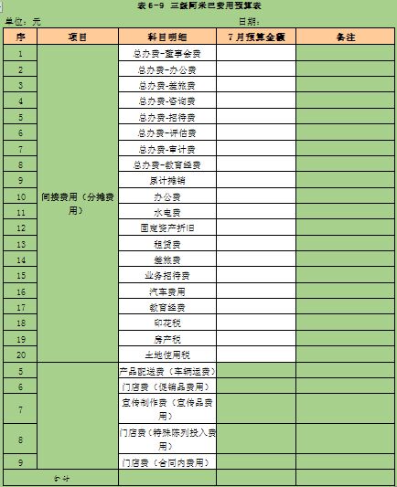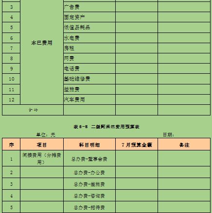 生产阿米巴费用预算表如表6-5、表6-6所示。