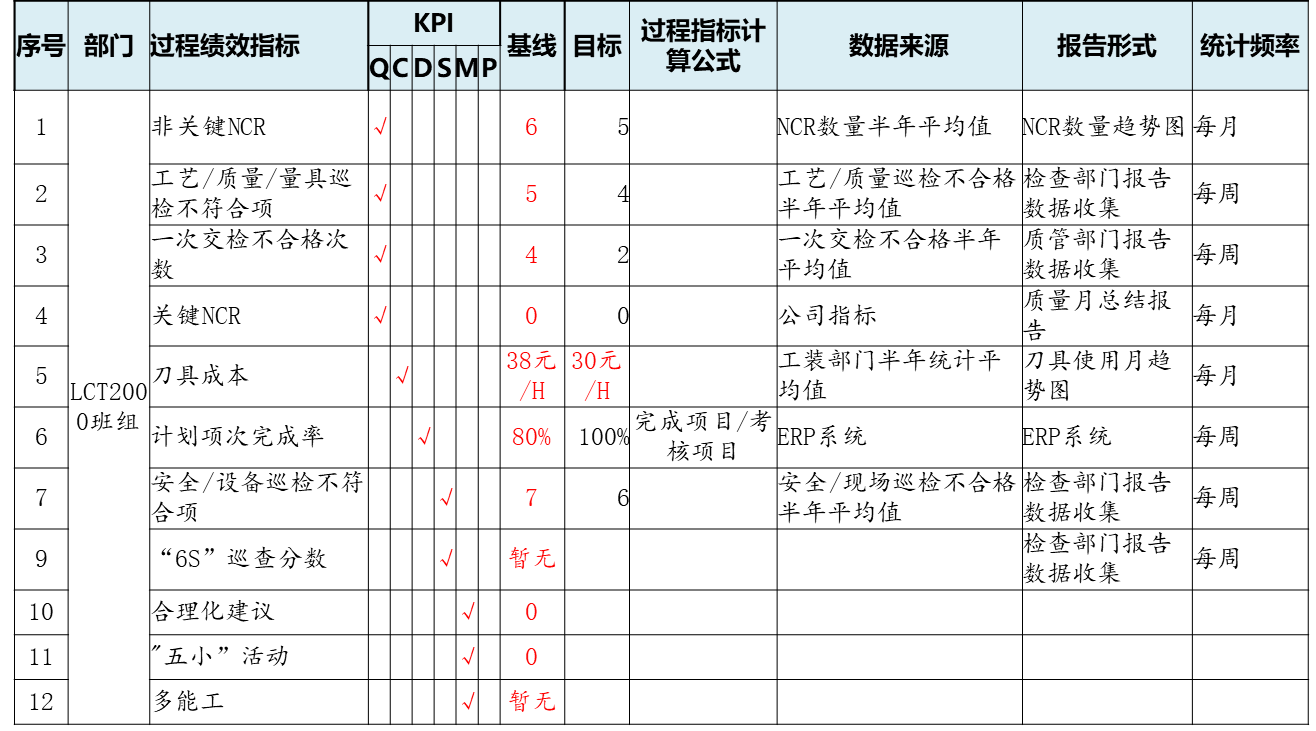 非量化目标 | 现场5S成果、提案改善无形成果、团队建设、学习与成长、班组文化…… |
