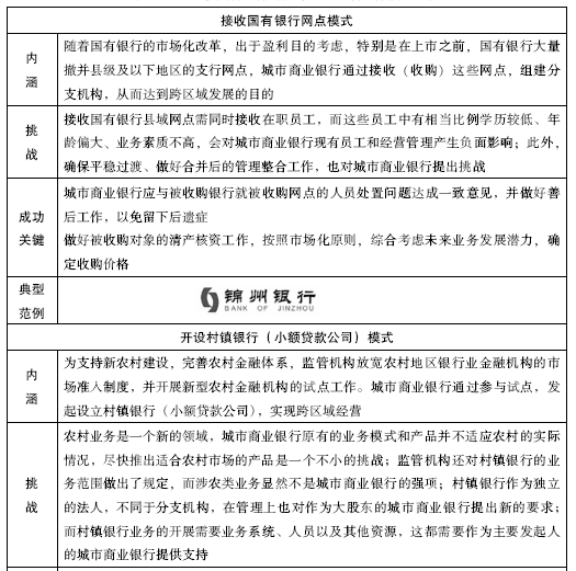 整体收购城市信用社、接收国有商业银行网点和借助大股东设立代表处的模式,均有其特殊性,因而只是个案,不具备可复制性;业务联合合作的模式可作为辅助模式,不能作为主流模式。