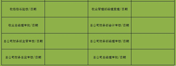 事后,由牧业管理部提交牧业总经理、总公司财务部会计、财务主管审核、财务经理审核、财务总监审核、总经理补签。