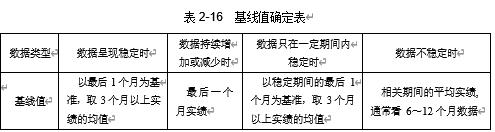 (14)​ 基线。需明确基线值的确定规则,在前面“指标目标确定”部分已经明确过取值的方法,参照表 2-16 执行即可。