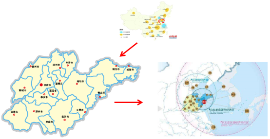 山东半岛城市群是黄河中下游广大腹地的出海口,同时又是我国距离韩国、朝鲜、日本地理位置最近的省份,地处我国环渤海区域,位于我国参与东北亚区域合作的前沿阵地。