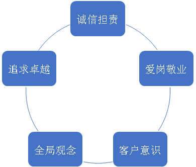 爱岗敬业 | 1. 有非常巩固的专业知识,热爱本职工作,有进取精神,能够利用各种资源使工作成果最大化 2. 能够以企业的利益及整体利益为标准,不断调整自己的行为 |
