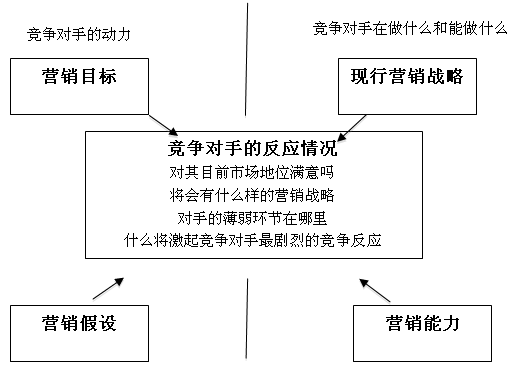 首先,把竞争对手的营销目标与其现在的市场地位相比较,竞争对手对现有市场地位的满意度能够预示其是否可能着手发起战略变革;然后,根据对竞争对手具体营销目标、营销假设、营销能力的分析,了解竞争对手对营销趋势的见解,及其对自身实力的评估,从而判断竞争对手将以谁为对手、将如何竞争;同时,分析竞争对手的营销目标和营销能力,以此评估其可能采取战略行动的预期强度;同样,评估竞争对手采取行动的可能收益,并将其与对手的营销目标相比较,可以判断该竞争对手采取行动的严肃程度。