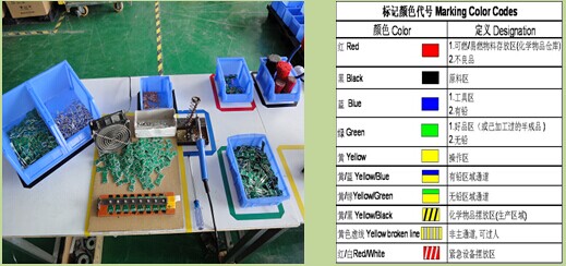 区域线就是对在制品、不合格品、通道、工具、托架等用不同颜色、形式的线条划定区域线,并做好标识,用于标准展示、物品整理、避免混料、发现异常情况等。