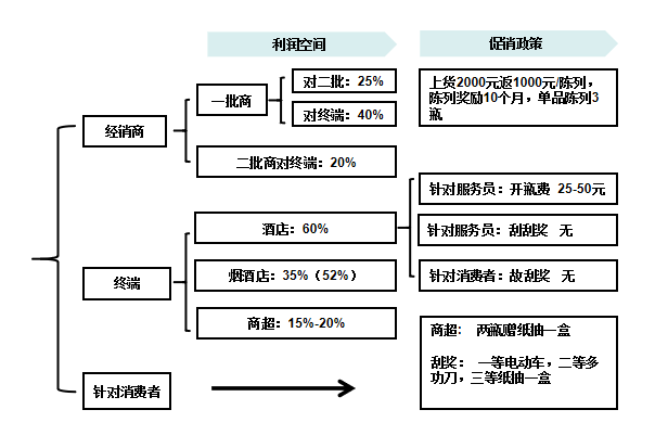 渠道成员 | 一批商 | 二批商 | 名烟名酒店 | 商超 | 酒店 |