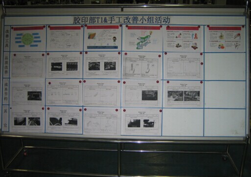 在员工休息区或现场讨论区建立精益成果展示板,让员工在休息的时候接受精益思想和展示他们的改善成果,如图2-51所示。