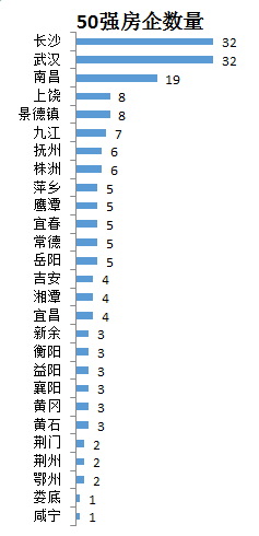 长沙、武汉、南昌等城市TOP50房企进驻较多,市场竞争十分激烈。
