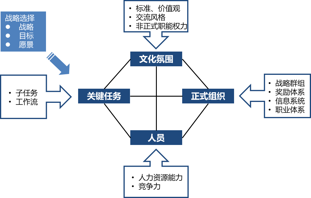 (3)关键任务、氛围及文化、人才、正式组织形成了执行力的四大构件。好的执行力是指无论对于成熟业务还是创新业务,构件之间均能保持相互之间的适配性。