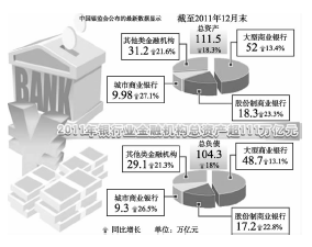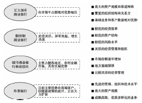 中国银行业历经多年发展,多层次的框架已经搭建完成,既有国有大银行,又有中间梯队的股份制商业银行,以及城市商业银行和面向农村的金融机构。截至2011年底,中国银行业金融机构包括3家政策性银行、5家国有商业银行、12家股份制商业银行、144家城市商业银行、212家农村商业银行、190家农村合作银行、2265家农村信用社、1家邮政储蓄银行、635家村镇银行等。