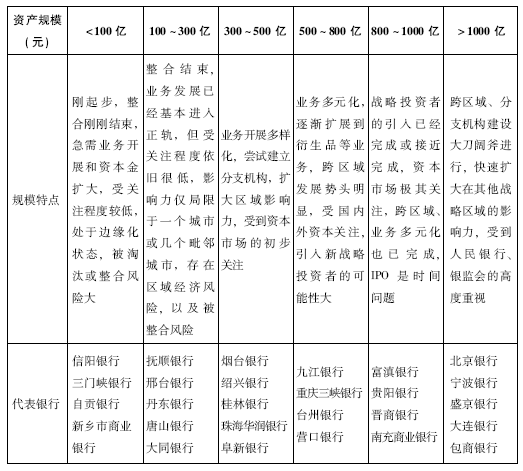 “规模”仍然是外界通常关注城市商业银行的重要指标,不同规模的城市商业银行特点如表1-4所示。