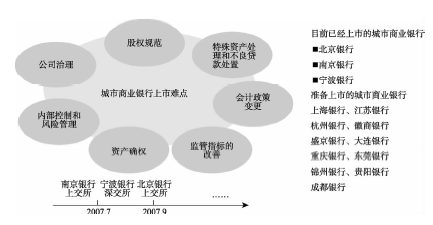 2012年之前,证监会对拟上市城市商业银行财务指标提出的要求包括资产规模高于800亿元,净利息收入高于20亿元。目前,证监会正在会同包括银监会在内的有关部门,抓紧研究城市商业银行发行上市的有关要求,主要是信息披露方面的要求。城市商业银行目前上市现状如图1-8所示。