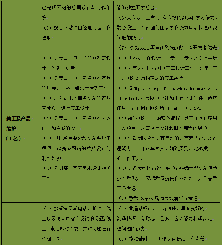 3-9  招聘岗位表