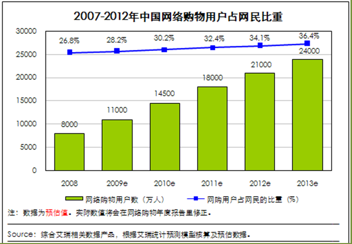 3-6 2007-2013中国网络购物用户占网民比例
