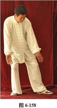 注意:摆正右腿,左脚向左前迈时,身体不可站起。变左弓步, 左前掌前推,与右掌上托,这三个动作要同时进行 动作要一致。左掌前推时, 掌心不可正对前方, 右掌上托, 要防止纵肩抬肘。两臂划弧时, 要用腰带领, 弧形要走圆满。