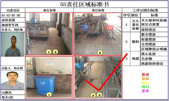 ②所有标准建立好之后,每个区域设置一块5S管理看板,见上图。