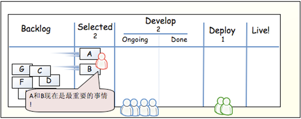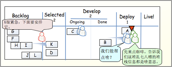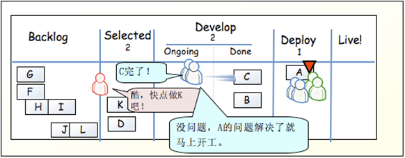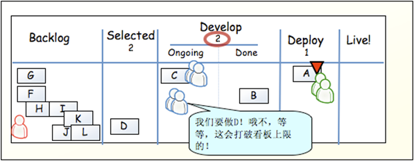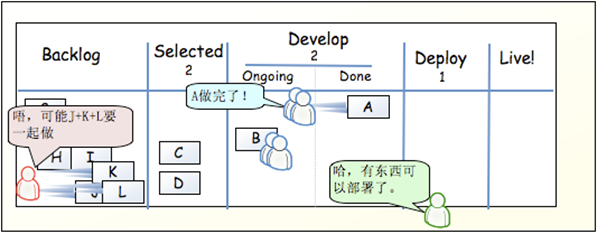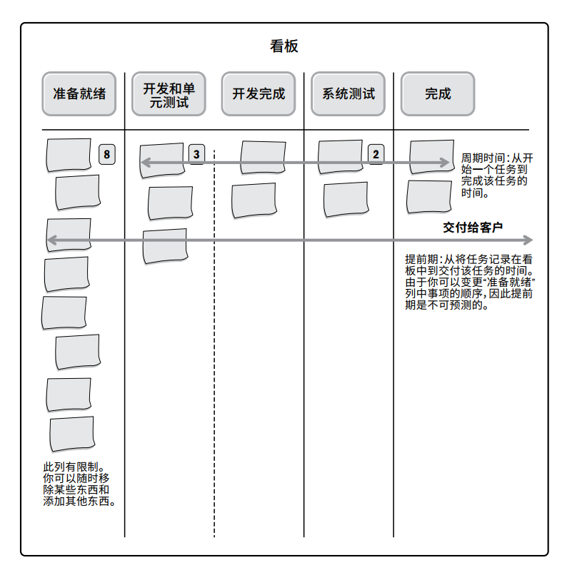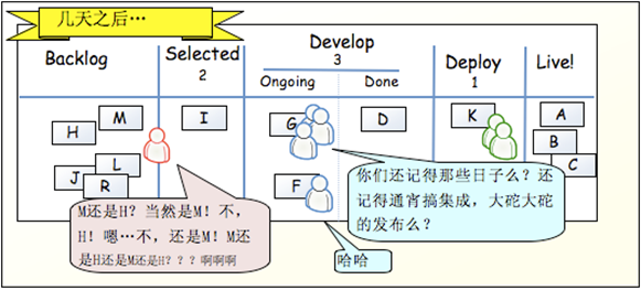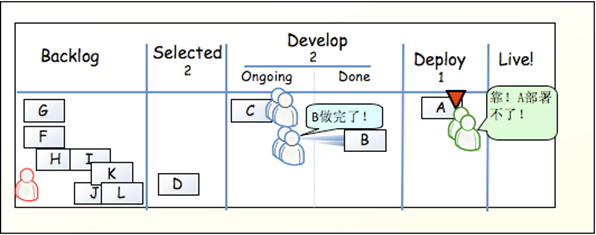 其实,看板是按流程状态限制在制品WIP,图4-13是非常有名的一个例子。