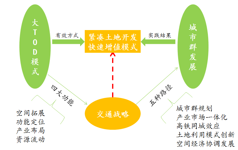 大TOD模式与城市群发展之间存在着双向互动作用。互动机制如下图所示: