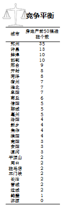 充分考虑TOP50房企之间的竞争平衡,郑州已进驻TOP50房企超过30个,应重点关注市场竞争带来的非理性拿地风险。除50强房企外,还要关注河南建业、康桥及正商等本土强势房企的竞争。
