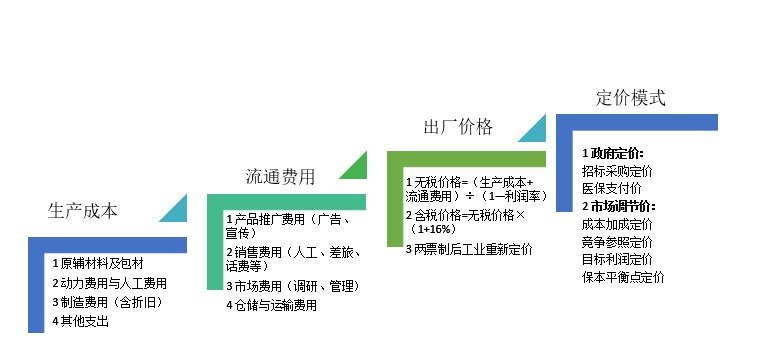 实际上,在医药产品的价格体系设计中,存在多种方式,最核心的依旧是保障成本与零售价之间的部分进行合理分配。比如成本加成定价法,以采购价格按照比例加成定零售价。