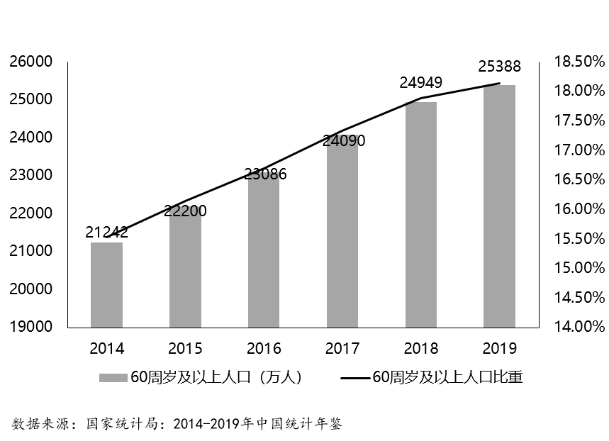 图4-30 2014-2019年60周岁及以上人口其占总人口比重