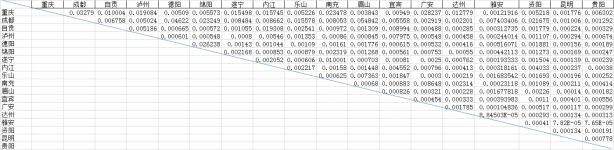 成渝内部城市经济联系强度表可以看出,成都和重庆联系相对密切,成都和四川其他地市联系也相对密切。但总体来看,由于其他地市的经济和人口与成渝相差较大,故经济联系强度相对其他城市群均较弱。