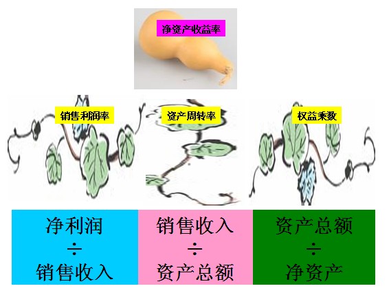 所谓三个基本点,就是销售净利率、总资产周转率和权益乘数。在这三个基本点上着力,可以提高企业净资产收益率。打个比方,假如净资产收益率是我们所要的小葫芦的话,销售净利率、总资产周转率和权益乘数就是小葫芦前面的三根藤或三个根。