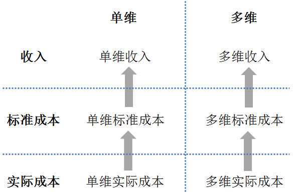 多维是相对于单维而言的,收入是基于标准成本分摊的,所以多维组合的收入,既是相对于多维标准成本而言的,也是相对于单维收入而言的,如图6-6所示。